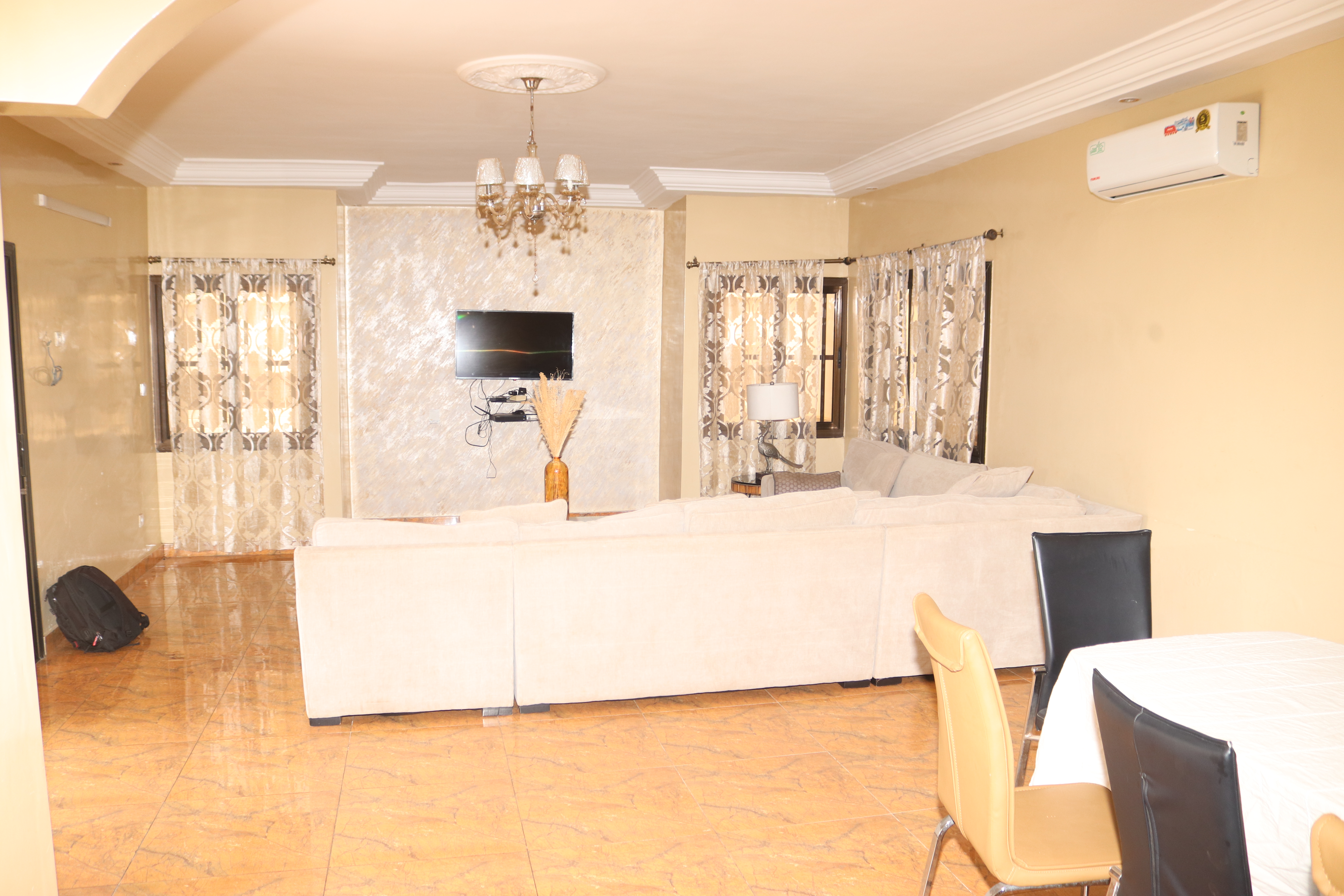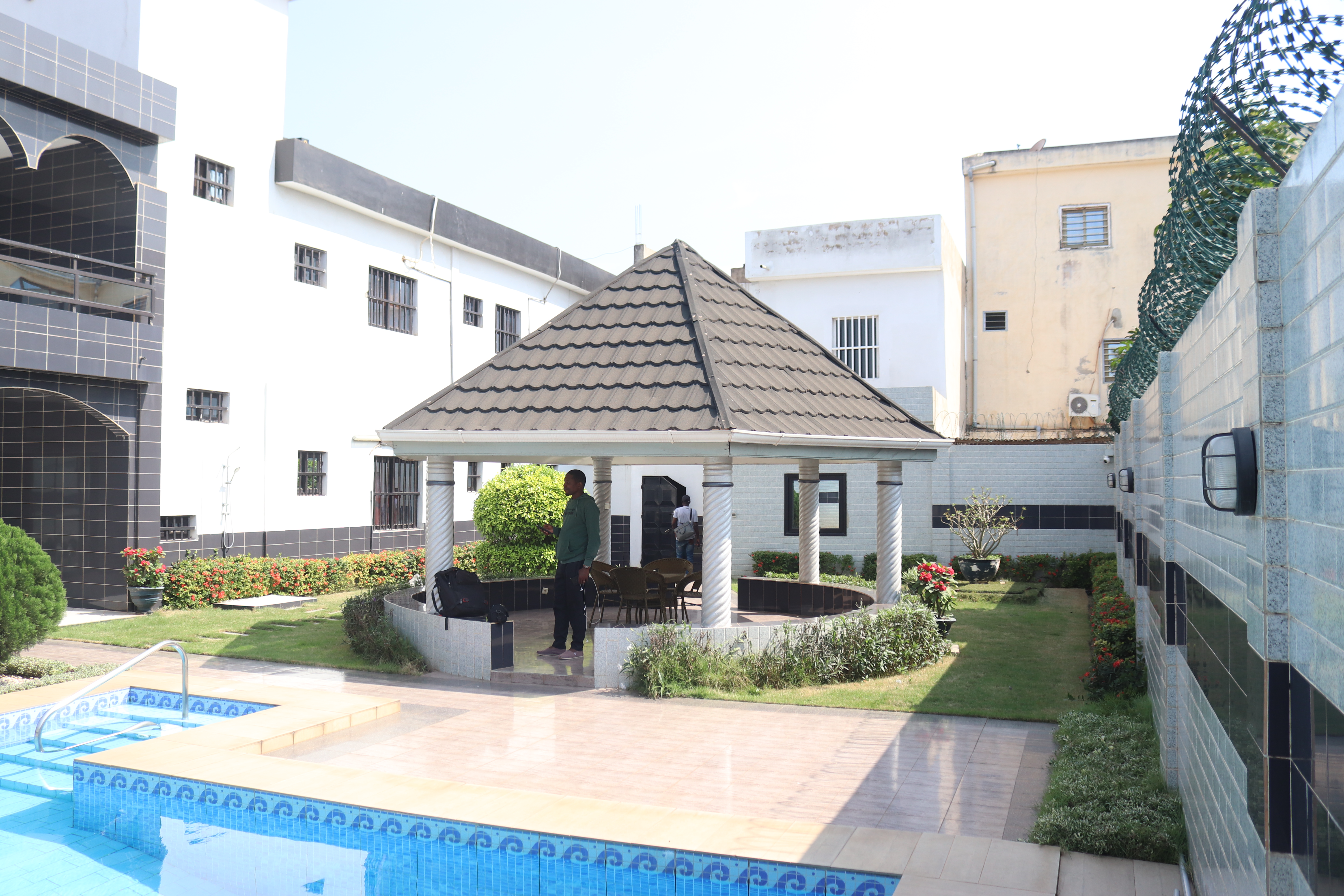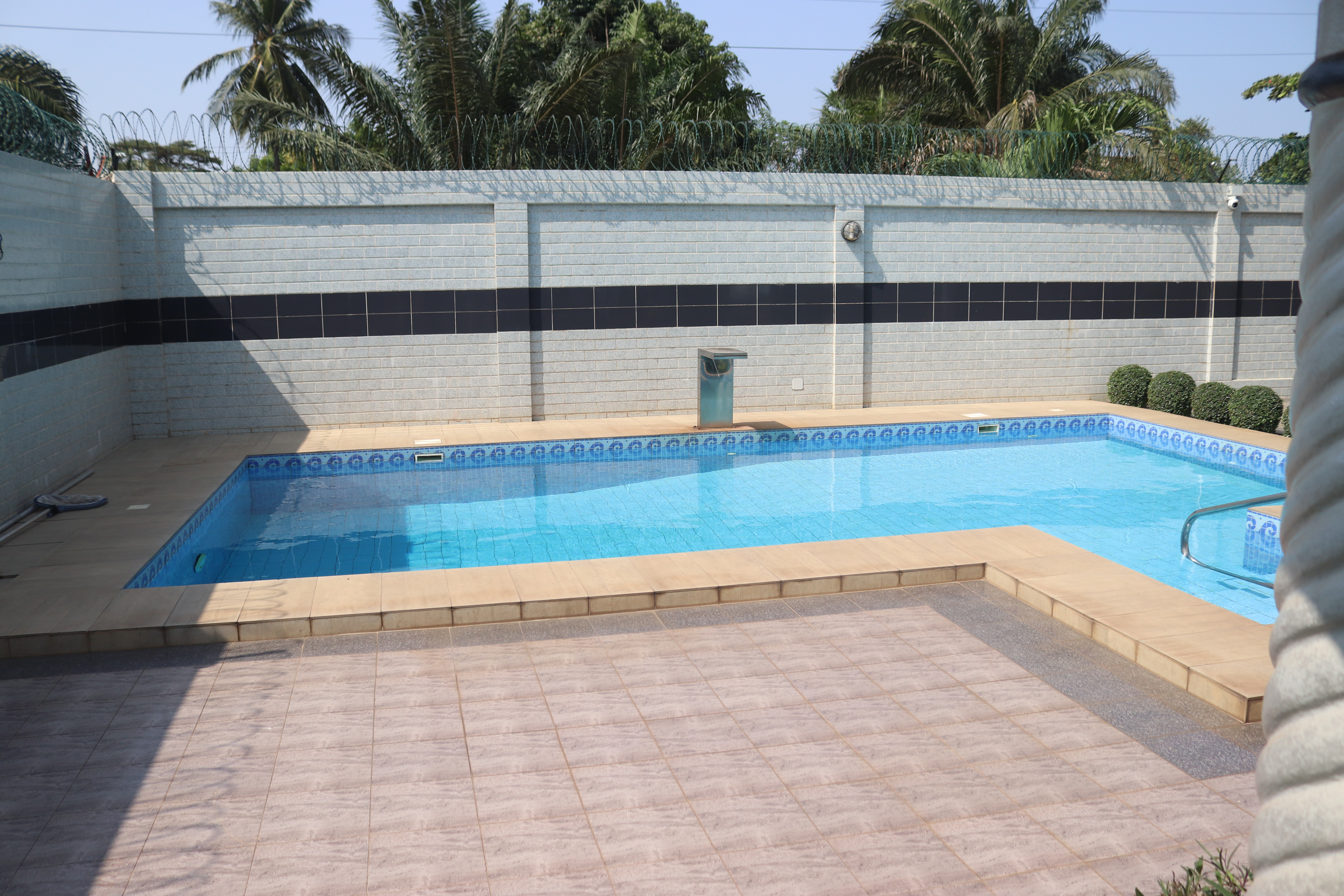 A Louer à Adidogomé Avénou pour vos séjours à Lomé : Une villa avec piscine Découvrez cette magnifique villa meublée, idéale pour vos séjours à Lomé. Elle dispose de cinq chambres, chacune avec sa salle de bain (wcd interne), de deux salons, et de deux cuisines, toutes les chambres et les salons sont climatisées. La cour, joliment aménagée avec une paillote et un jardin illuminé, s’accompagne d’une belle piscine et d’une machine à laver qui se trouve dans une chambre indépendante. Un garage est disponible pour accueillir deux grandes voitures. De plus, une dépendance avec sanitaire est prévue pour un gardien. Cette belle villa est située à Adidogomé Avénou, à 100 mètres du goudron, près de la pharmacie la Cité.